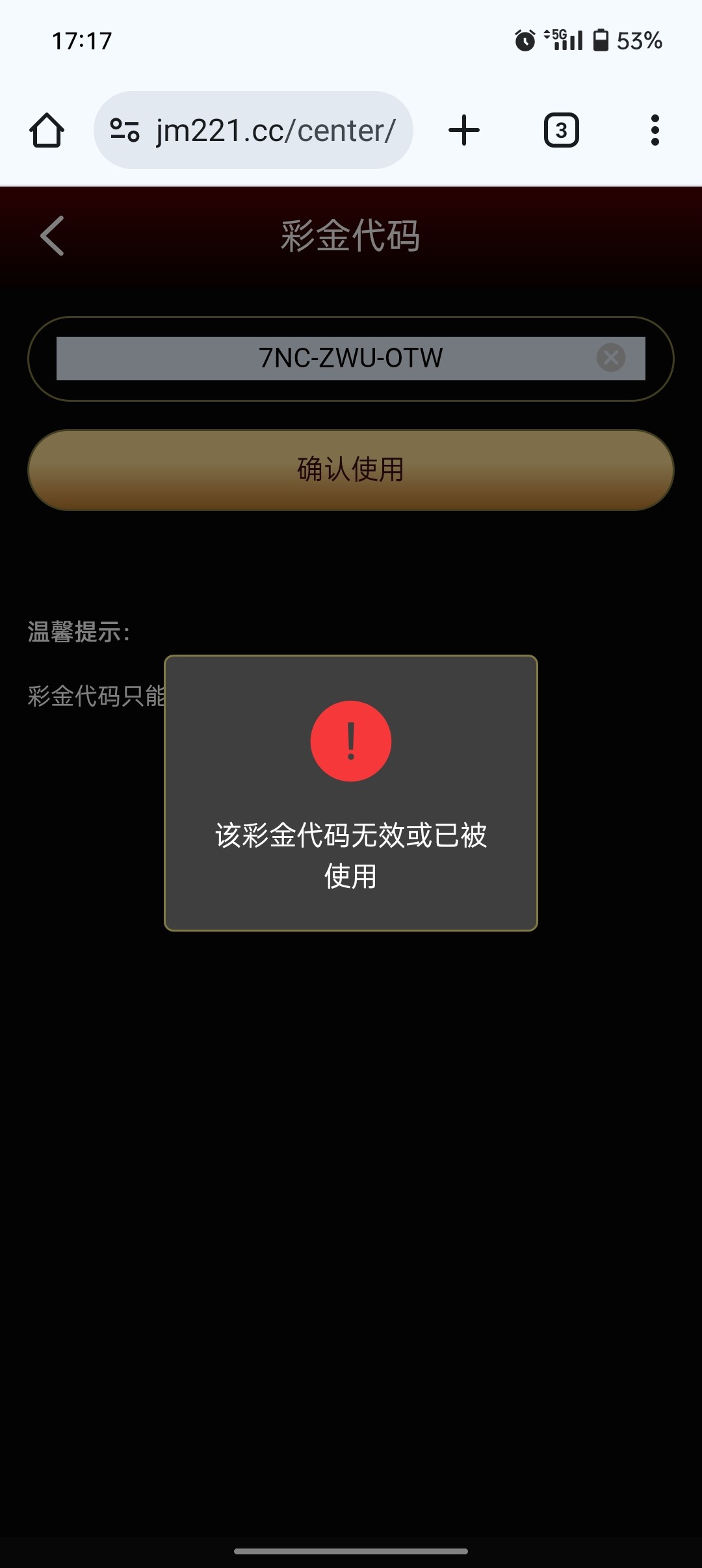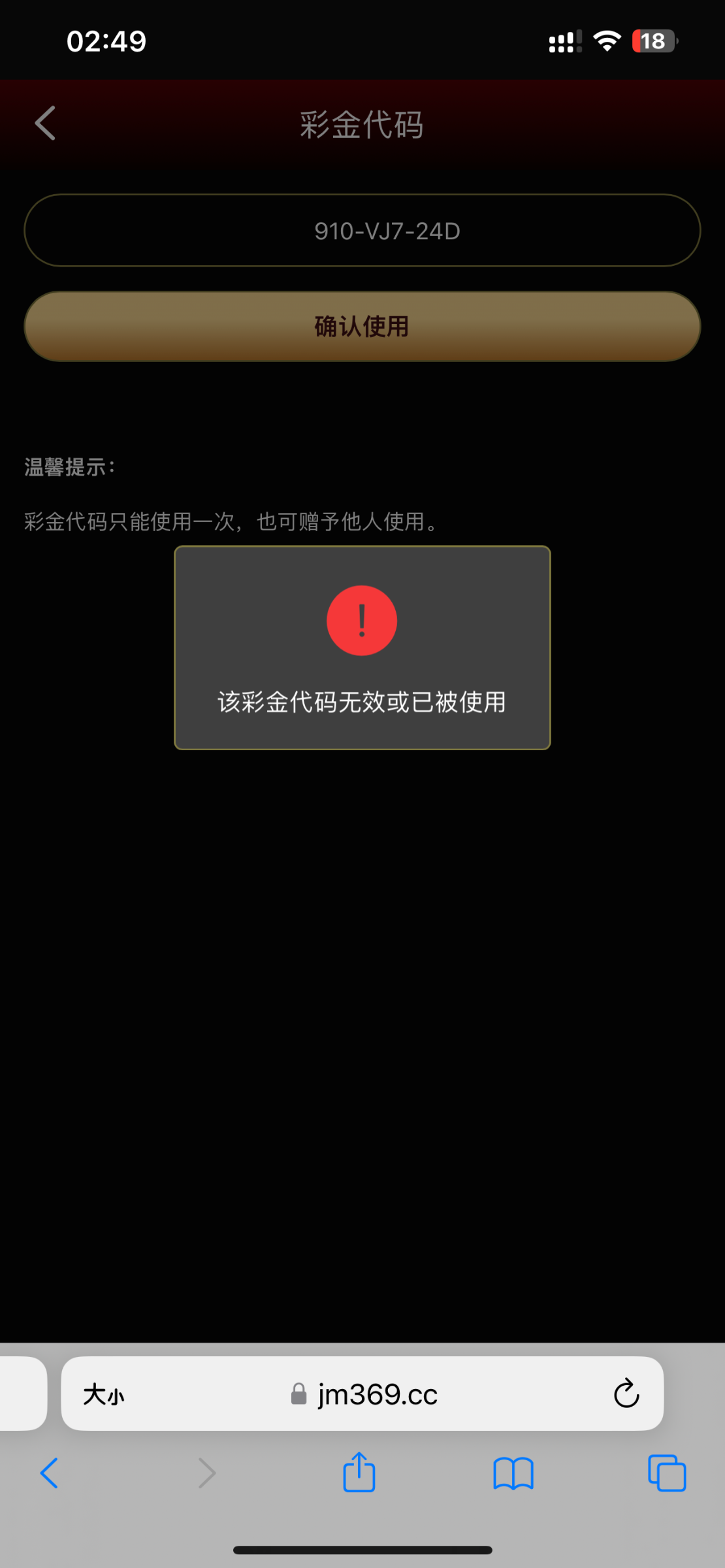 尼玛、刚兑换的代码,注册去平台使用就说“被用过无效代码”真牛批,没格局的台